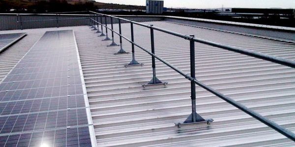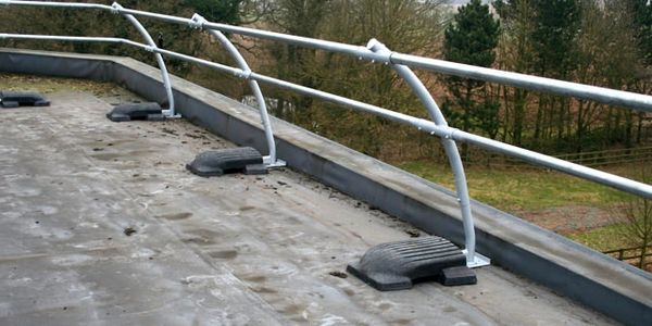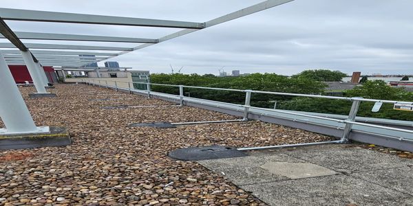 Counterweighted handrails are an excellent solution for providing collective edge protection without the need for roofing penetration, ensuring safety without compromising structural integrity. All systems are installed and inspected to comply with BS 13700 standards.