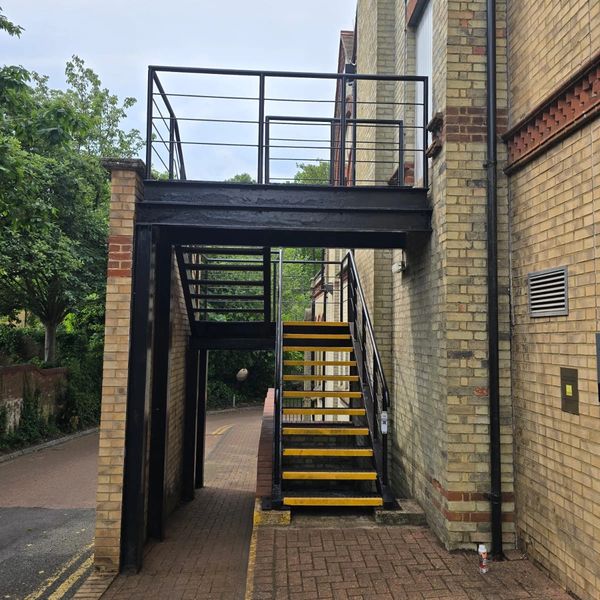 Following this, our team returned to begin rust treatment and platform replacement works on the external fire escape staircase. The initial phase involved targeted rust removal and the replacement of compromised platforms, with additional remedial actions scheduled to complete the process.